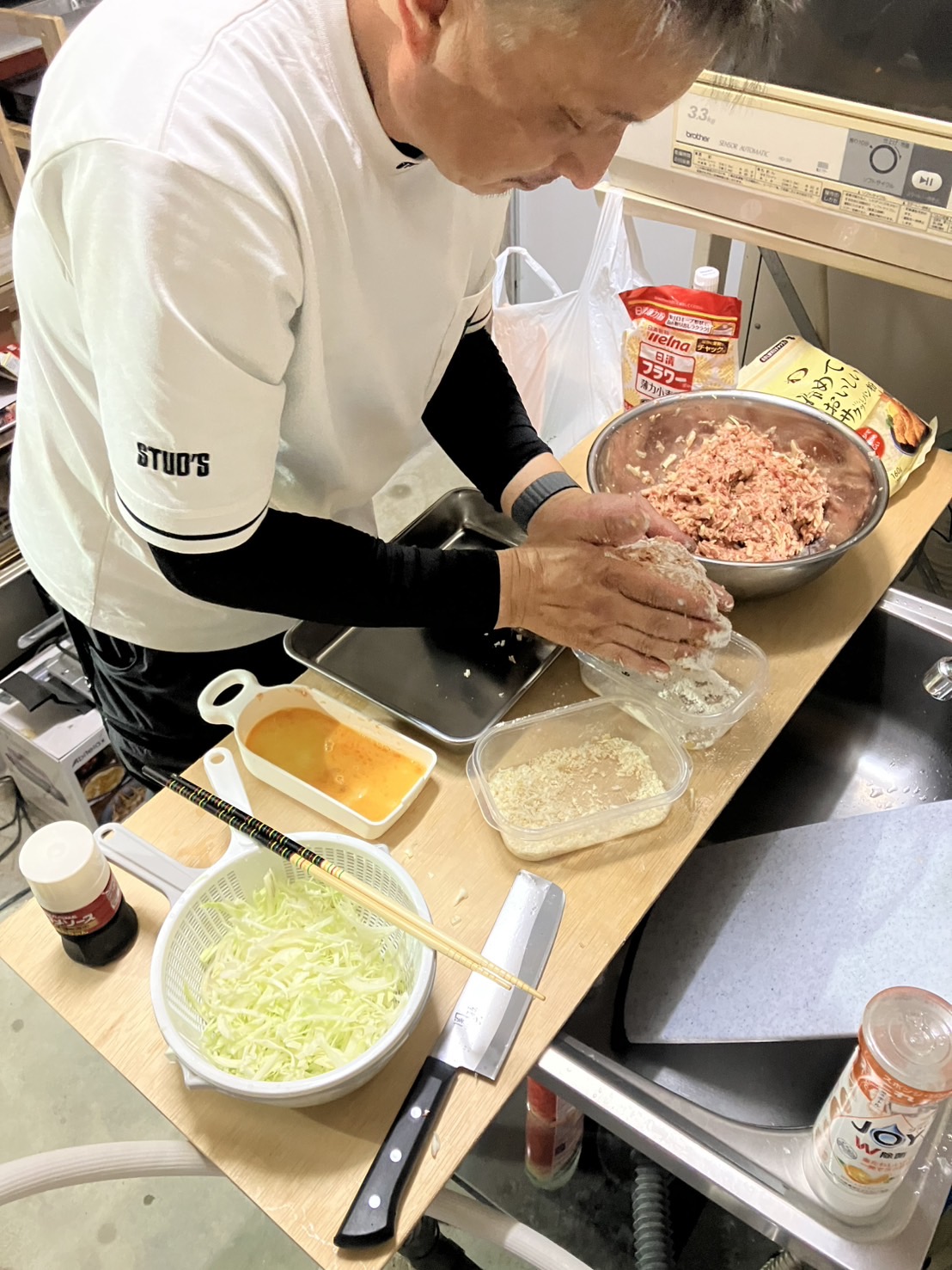 昨日の夕ご飯作りの様子です(^^♪メンチカツの下ごしらえ中です。 一度も総菜を買ったことがなく、全て手作りという徹底ぶり!! それぞれ役割分担をして快適に過ごしております♬♬ 今日は何を作るのでしょう??(*‘ω‘ *)